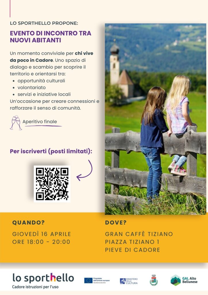 Lo SportHello organizza un incontro conviviale aperto ai nuovi abitanti del Cadore: un momento di dialogo con la finalità di orientarsi tra opportunità, servizi e iniziative di volontariato offerti dal territorio.